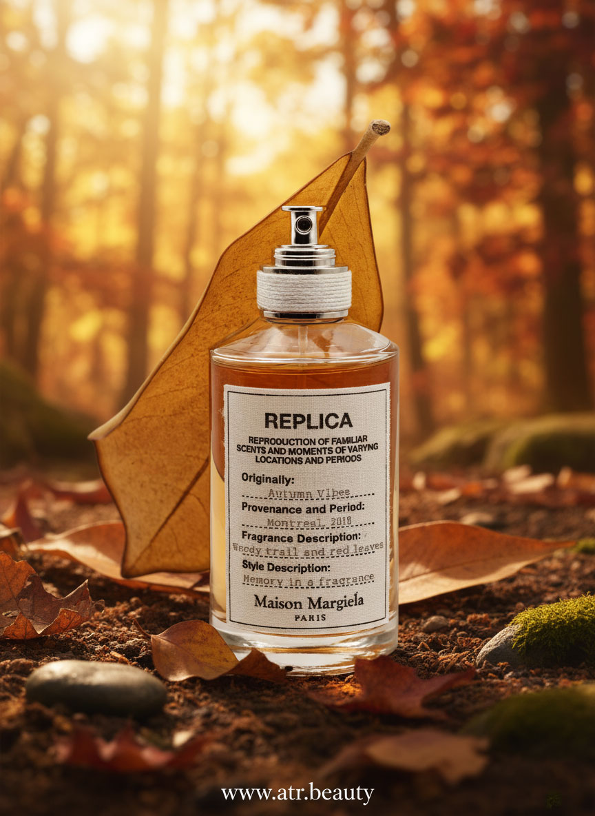 این عطر در سال ۲۰۲۱ توسط عطرساز خلاق Fanny Bal خلق شد و در مجموعهی معروف Replica از برند مارژیلا جای گرفت. هر عطر از این مجموعه، بخشی از خاطرات انسانی را بازآفرینی میکند — از «Lazy Sunday Morning» تا «By the Fireplace» و حالا «Autumn Vibes»، یادآور پیادهروی در جنگل پاییزی با زمین پوشیده از برگهای نارنجی.
